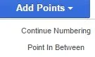Sampling points can be added. Add Points > Continue Numbering adds a sampling point continuing from the highest number. Add Points > Point in Between adds a point in between existing points and re-numbers the sequential points. Click on the map to add points.
