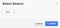 When all changes have been made, click Save. The Select Season window opens. Assign a year to the sampling mission, and click Confirm. The most current sampling mission will get dispatched when soil sampling is requested.