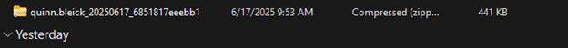 10. A zipped folder will download and be placed in the bottom left corner of the screen. To view the file, navigate to the downloads folder of the computer and double click on the file.