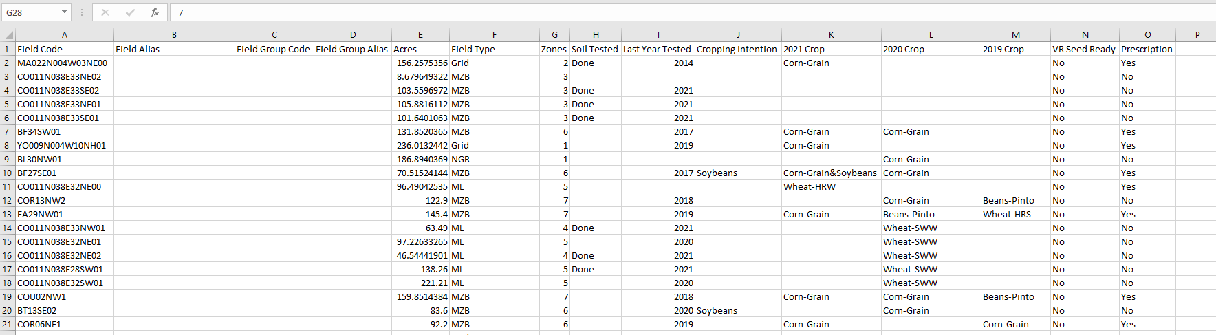 Users can edit the Cropping Intentions column. This is strictly for planning purposes and will not affect prescriptions.