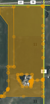 4. To edit a border on the Map Pane, click Actions > Edit Points / Vertices. Click inside of the field border and notice that orange vertices appeared around the exterior of the polygon. Click on these orange dots and drag them around to modify the border. To finish editing, click anywhere outside of the field border