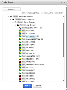 3. Use the Profile Selector to navigate to the desired field. Click Select, at the bottom of the Profile Selector.