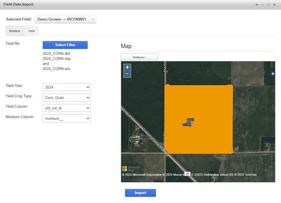 8. Click Import at the bottom of the screen. A message will display when the yield data has been successfully saved.