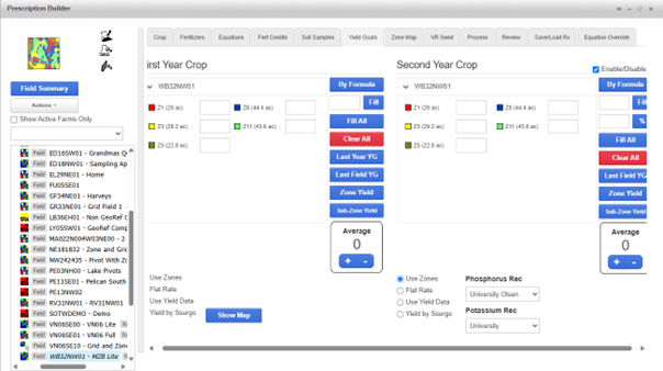 Last Year YG – Uses the yield goals from the last time the selected field had a prescription built for it of the same crop.