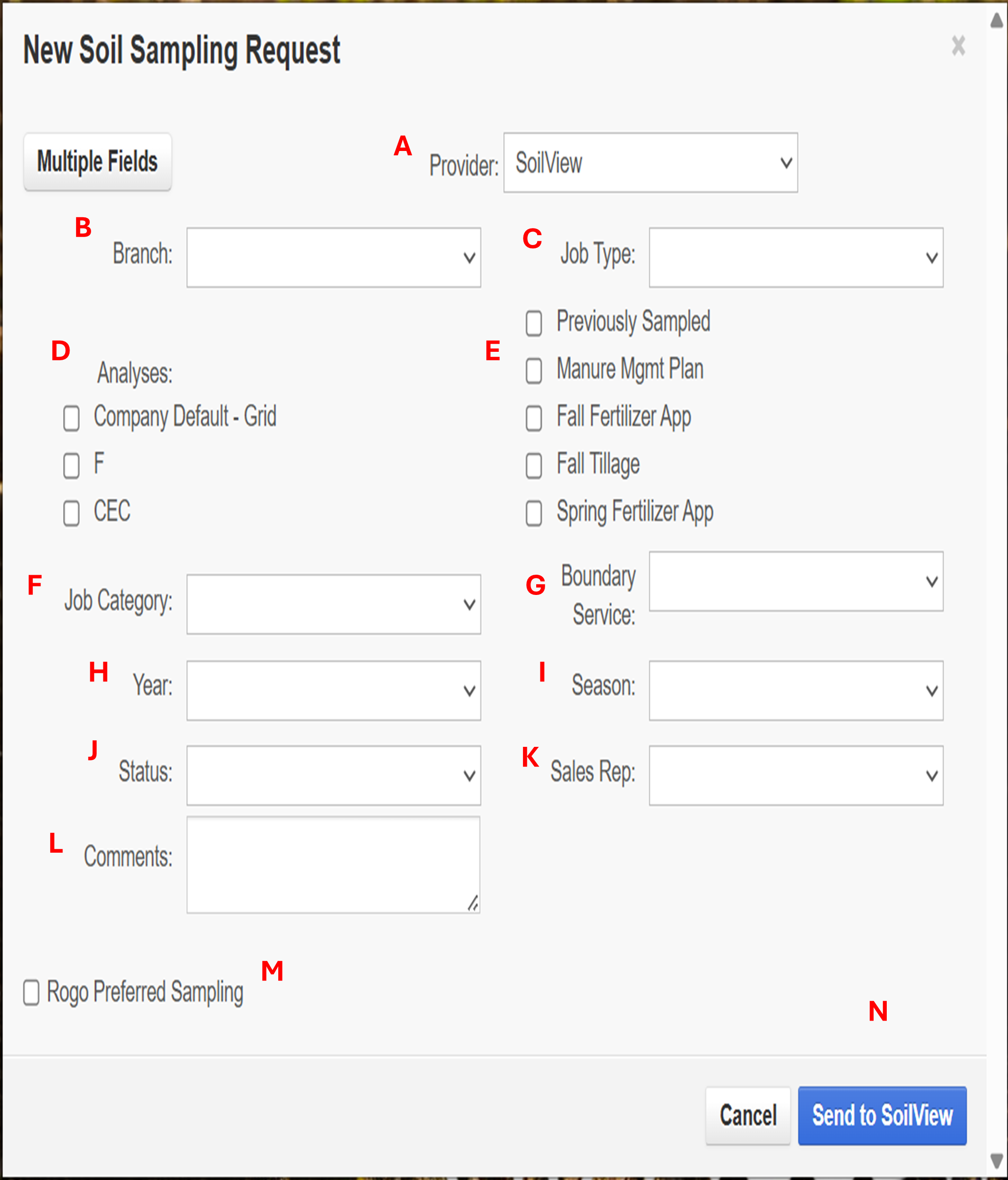 Request Fields for Soil Sampling