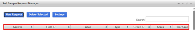 The columns in Soil Sample Manager > Soil Sample Request Manager can be shown or hidden using the check boxes.